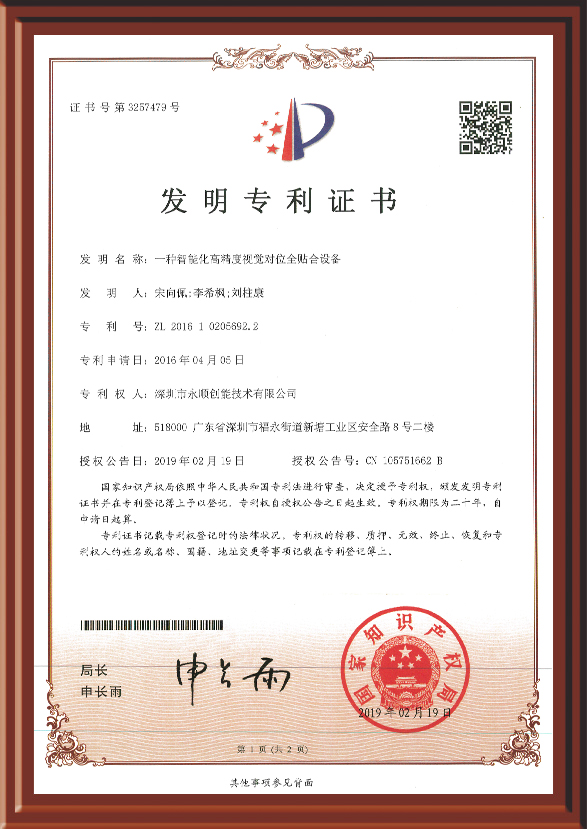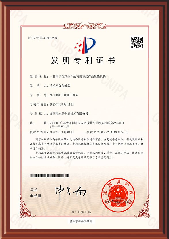 國家權威機關認證,榮獲國家專利證書